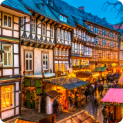 Christmas markets with lights, mulled wine, and festive charm.